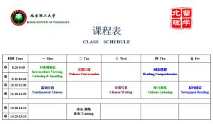 4. Lịch học tiếng Trung (mẫu- tham khảo):