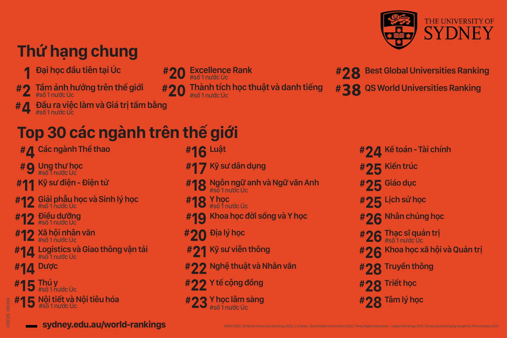 - #3 tại Úc (2023 QS World University Rankings).