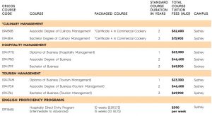 4. Học phí trường William Blue College of Hospitality Management